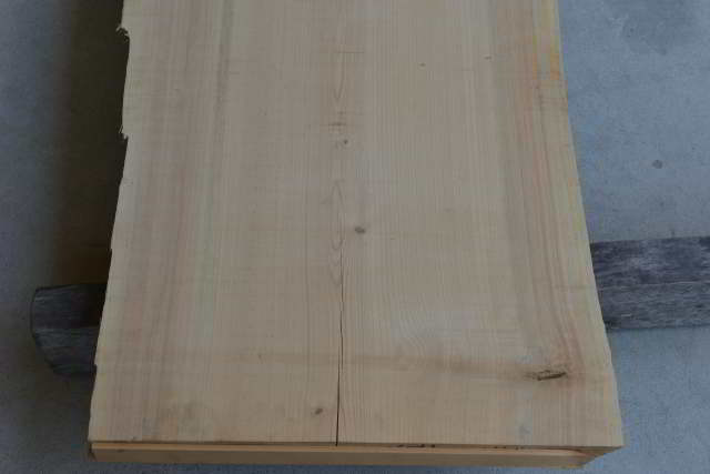 桧の一枚板 015 2021.01.102020.05.21 HOME>桧の一枚板各種>桧一枚板015 桧一枚板015 桧一枚板015 木表 長さ1m×巾49cm×厚さ6cm 価格20,000円(税別) 芯割れが深く上下の割れをよけた有効長さは85cmになります。 桧一枚板015 木表元 元の芯割れ 桧一枚板015 木裏 芯節が細かく点在して、芯割れもありますが 桧板が厚さが6cmあるので多少の回避は出来ると思います。 桧一枚板015 木裏元 木裏の芯割れは深く木表まで貫通しています。 桧の一枚板各種 ページ先頭 神棚、神具、御霊舎製作の様子は「ひとりごと」でご紹介しています。