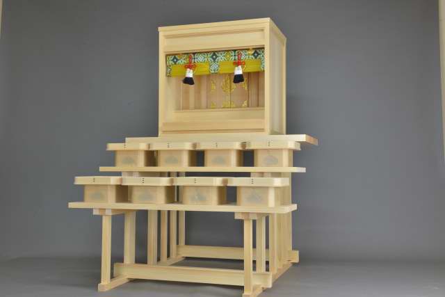 巾90cmの組立式祭壇に厚屋根違三社宮 (小) を設置