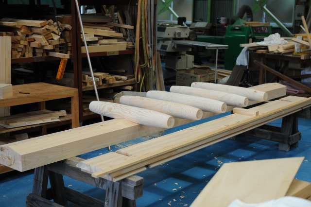 御扉のハシバミ加工が終わり、ほぞの丸め加工長押に組み込み、